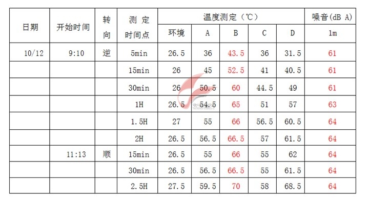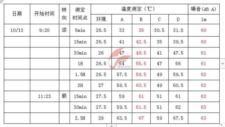 測試過程:減速機類型:斜齒(加脂量:25g