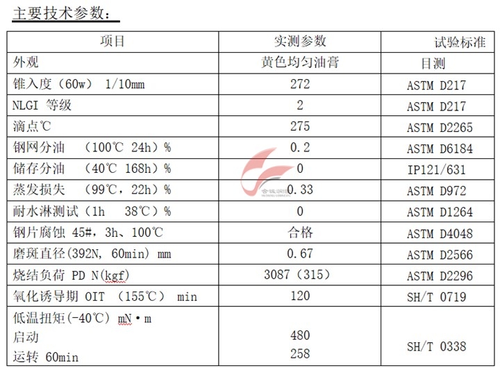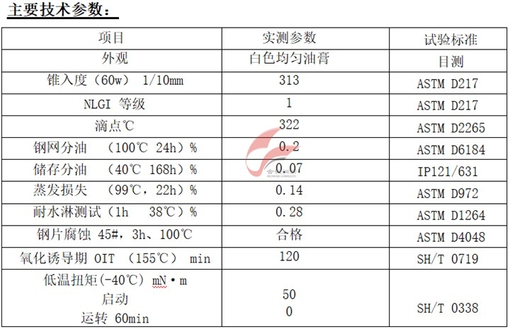 ※ 良好的潤滑性、小的工作扭矩和良好的粘附性;