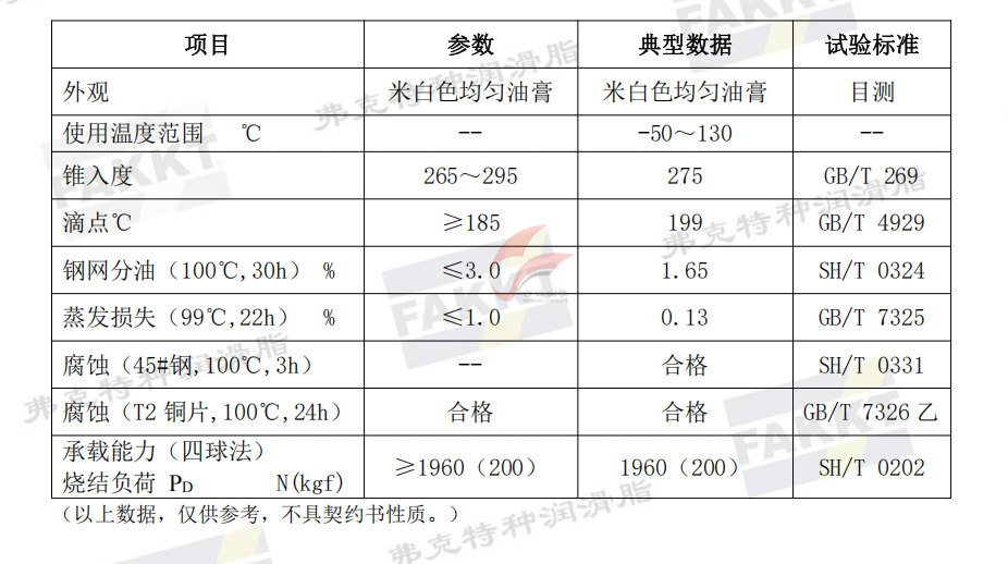 FAKKT-MG4201是鋰皂稠化合成油添加抗氧化、抗腐蝕等添加劑精制而成的長效低溫潤滑脂。產品設計用于要求低溫潤滑或需低啟動力矩的部件。